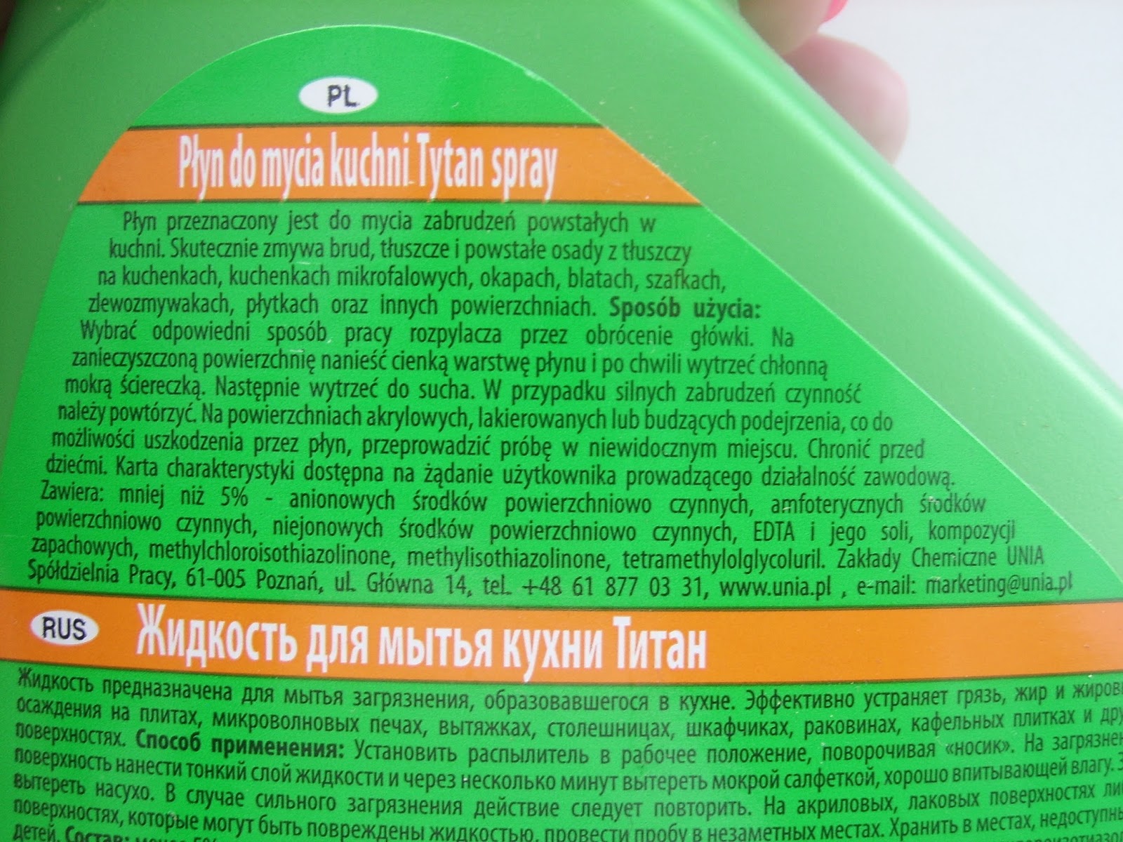 Mój pomocnik w kuchni- recenzja: Płyn do mycia kuchni Tytan ekspert w kuchni spray- Unia